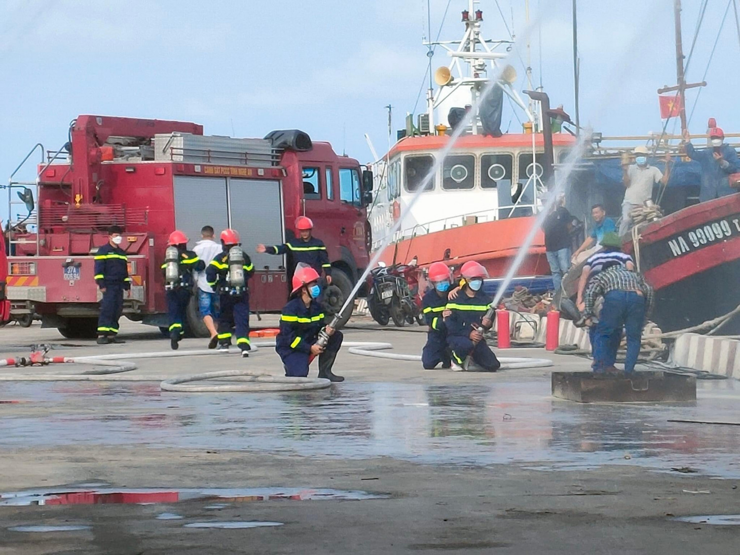 tổ chức diễn tập PCCC&CHCN tại cảng cá Quỳnh Phương năm 2022