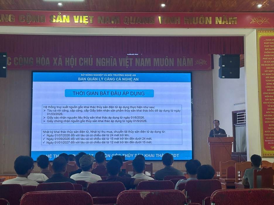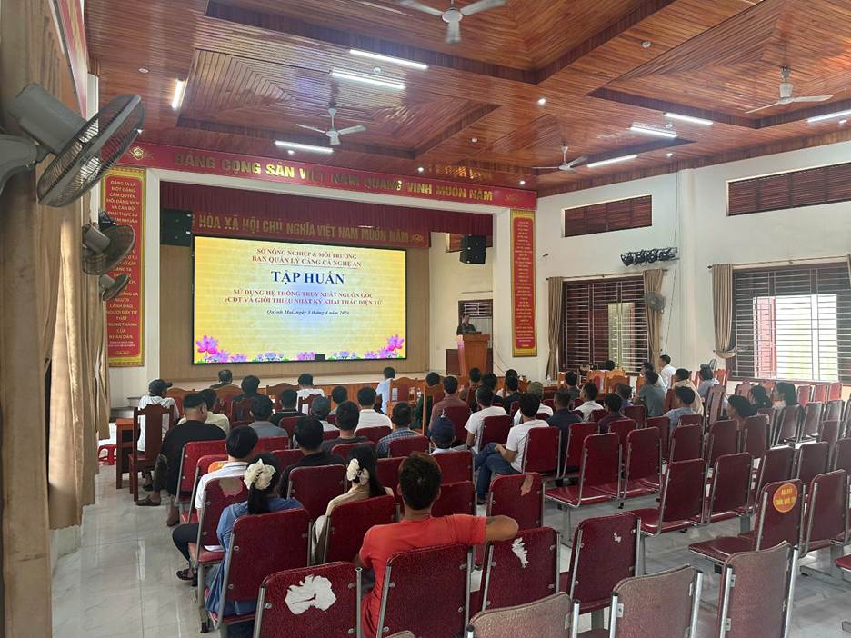 Thực hiện chương trình công tác tháng 4 năm 2026, Ban quản lý Cảng cá Nghệ An đã phối hợp với UBND các xã, phường ven biển và lực lượng Bộ đội Biên phòng tổ chức các lớp tập huấn sử dụng Hệ thống phần mềm truy xuất nguồn gốc thủy sản khai thác (eCDT) và giới thiệu thực hiện nhật ký khai thác điện tử cho ngư dân trên địa bàn trong 04 ngày từ ngày 02/4-05/4/2026.