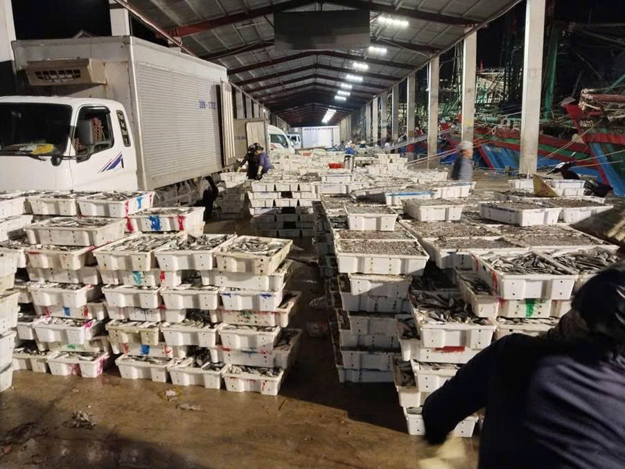 Hình ảnh: Sản lượng thủy sản khai thác được bốc dỡ qua cảng cá Lạch Quèn, Nghệ An